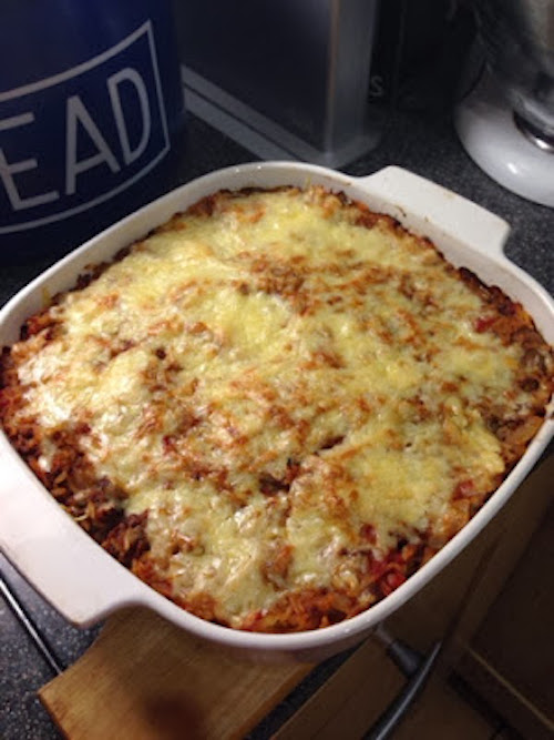 If you don't like spice just leave the chili out of it and I'm sure it would still be tasty, I think this would be a great dish to make for a family and once its prepared it can just go in the oven while you get on with other stuff you don't have to stand over it stirring or anything like that. It's a pretty good one to make from store cupboard ingredients and is quite economical and makes quite a lot! I took some to work for lunch the next day : )
